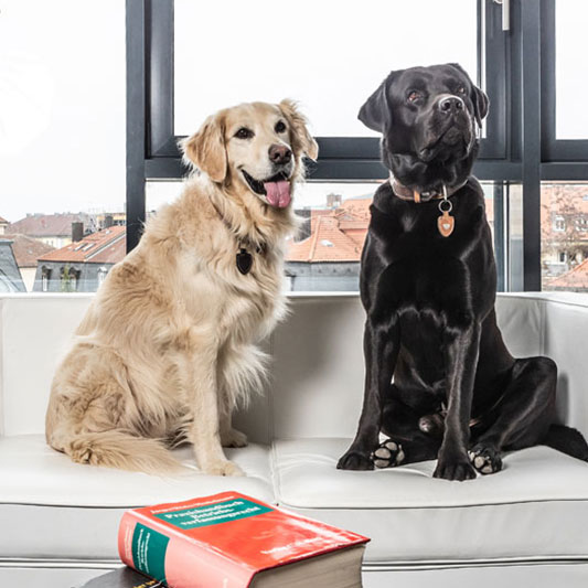 Wer möchte und Glück hat, kann unsere beiden Hunde Benji und Puma beim Besuch in unserer Seminare kennenlernen.